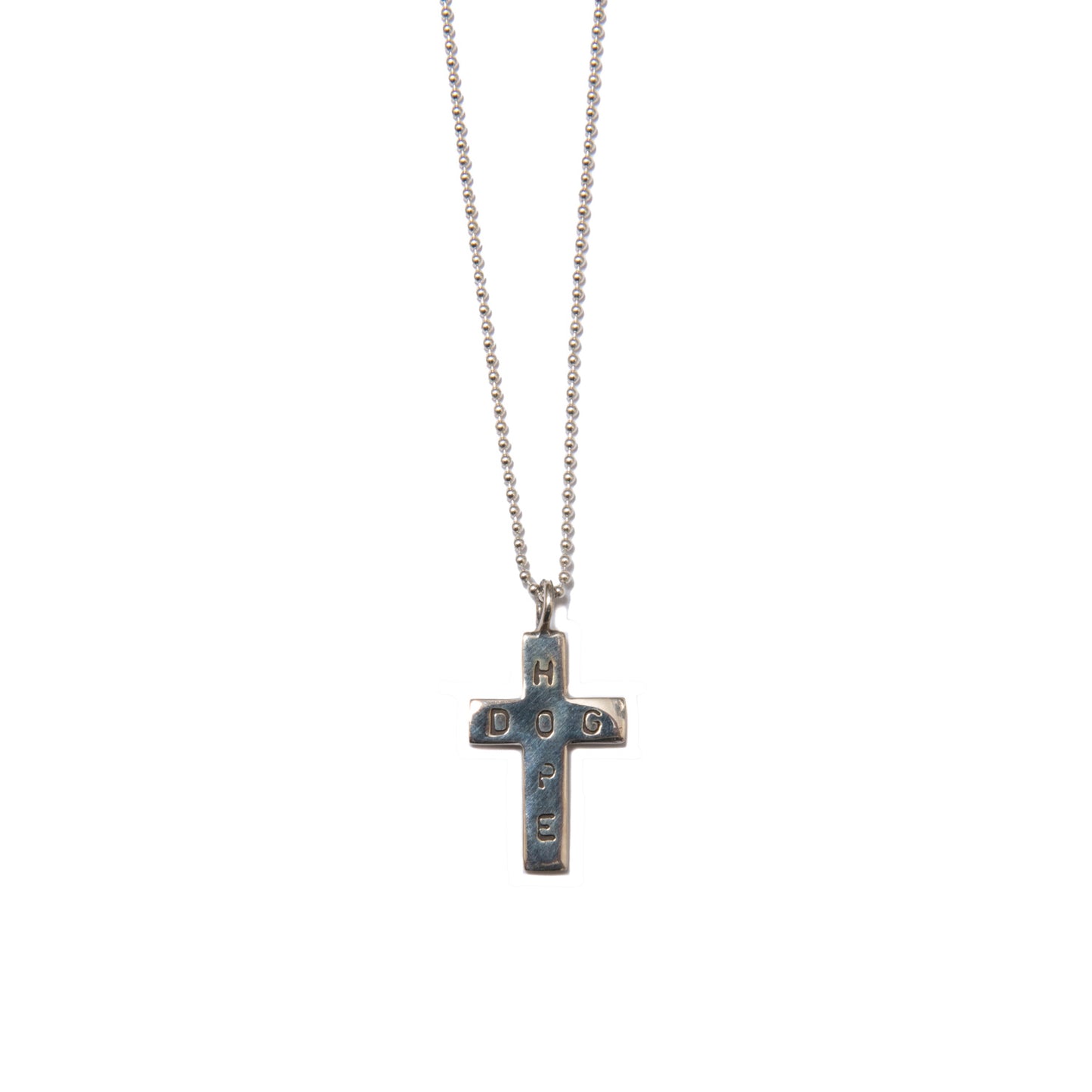 A perennial favorite accessory from ROTTWEILER. This rosary has a cross on the tip and a rose on the clasp, giving it a luxurious feel. The top is engraved with the words "HOPE" and "DOG." The silver used is 925 silver.