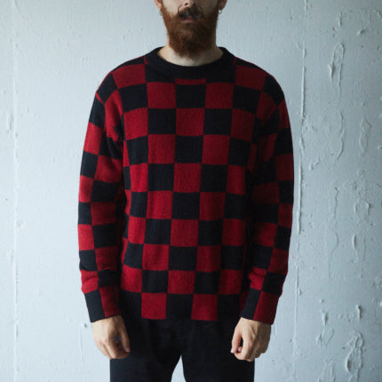 AS STANDARD アズスタンダード Check Knit L/S - RED -