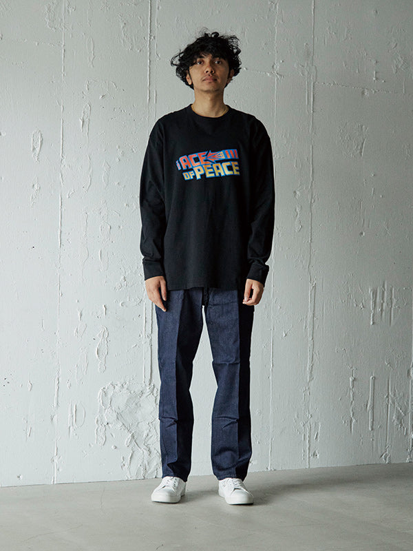 アズスタンダード定番フレ-ズTHE ACE OF PEACEを某有名映画ロゴにアレンジしはめ込んだユーモア―ある一品。スクリ-ンスタ-ズとのコラボ肉厚BODYもおすすめです!!