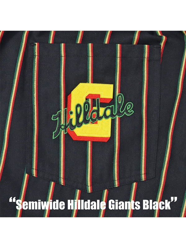 強豪チームヒルデールジャイアンツの印象的なラスタカラーをテーマにしたストライプ。ポケットのチームロゴはフェルトワッペン刺繍で特別な1本です。