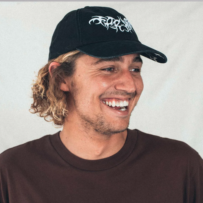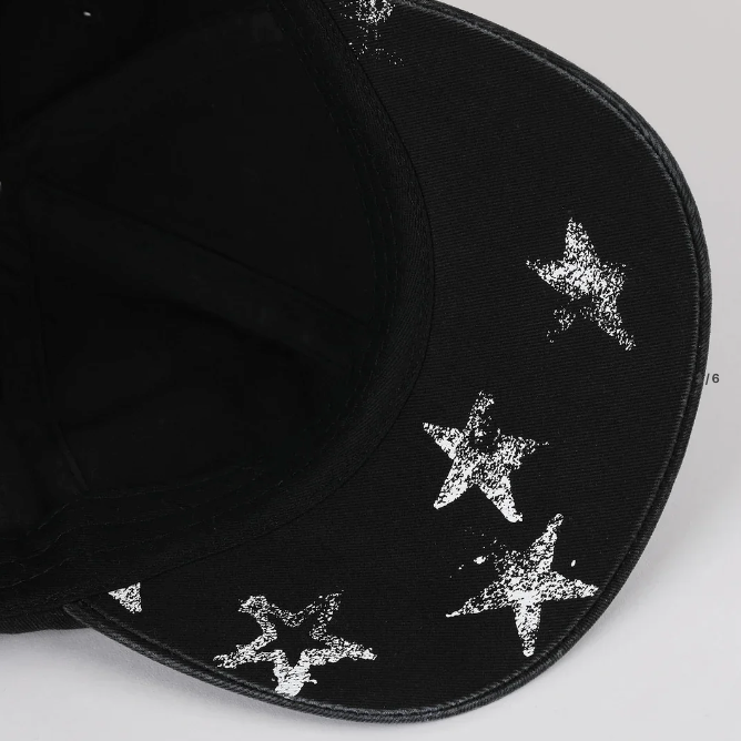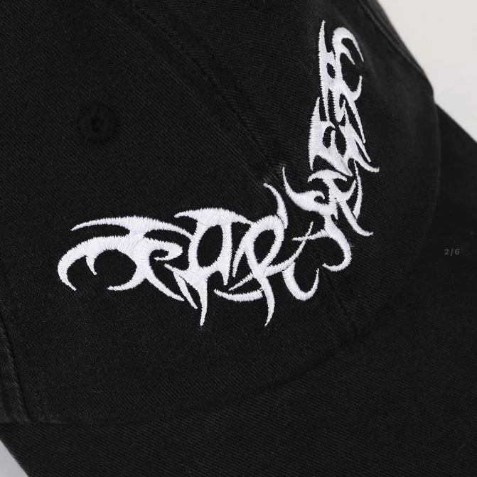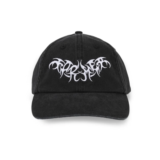フロントにはトライバル柄の刺繍、ツバ下にはスクリーンプリントのグラフィックが施されています。ストラップバックで快適なフィット感。