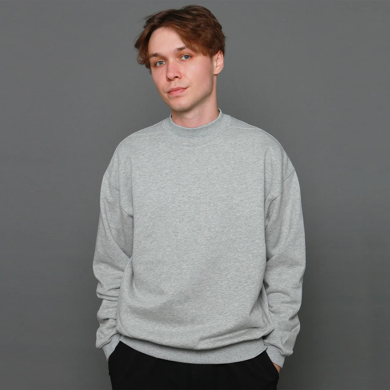 ガゼットを襟横横につける事で普通のスウェットと差別化、クリアな表情が大人な一枚。