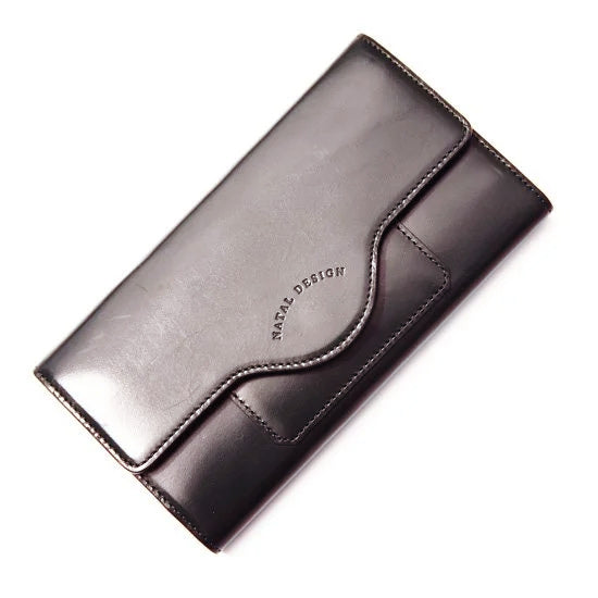 被せ蓋仕様の長財布で三つ折りタイプのデザイン。