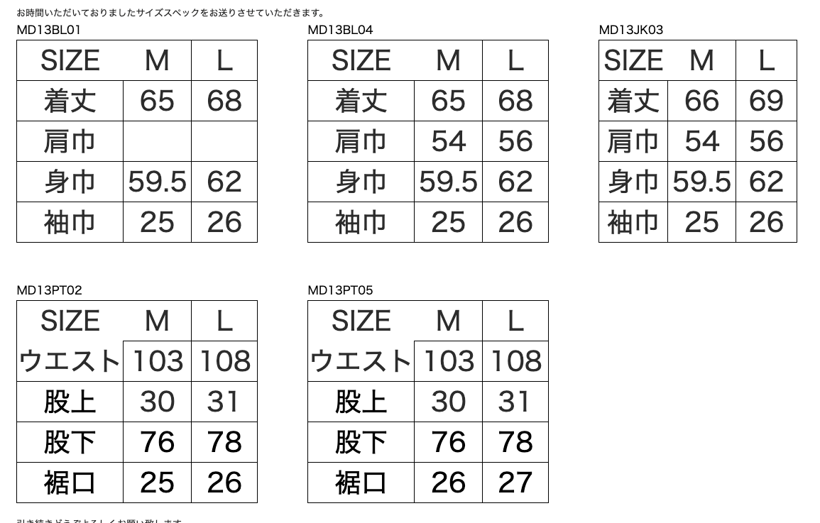 | サイズ | M | L | - | |