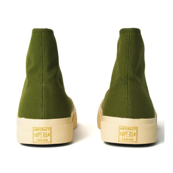 【雑誌 GOETHE 掲載】SUPERGA スペルガ 2433 ワークス ハイカット コットンキャンバス WORKS HCUT COTON CANVAS - GREEN-OFF WHITE -