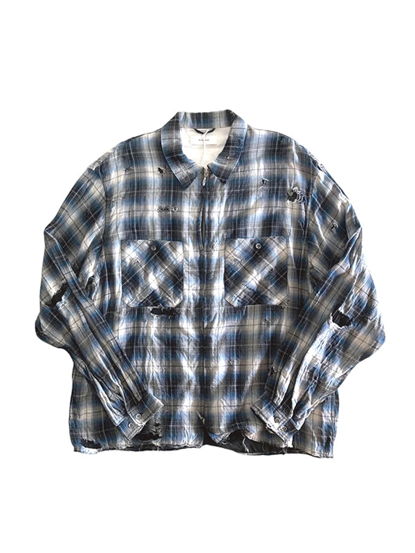 ジップネルシャツにデザイナー私物のダメージを再現。