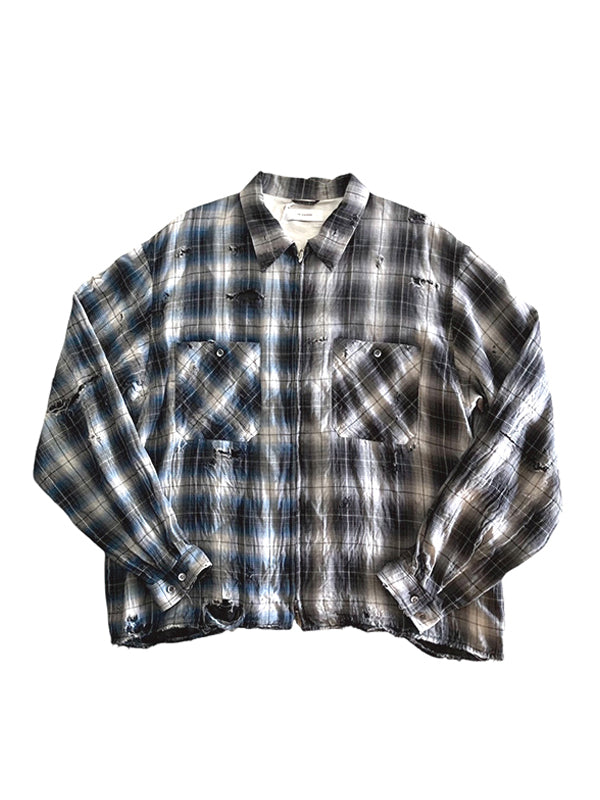 ジップネルシャツにデザイナー私物のダメージを再現。
