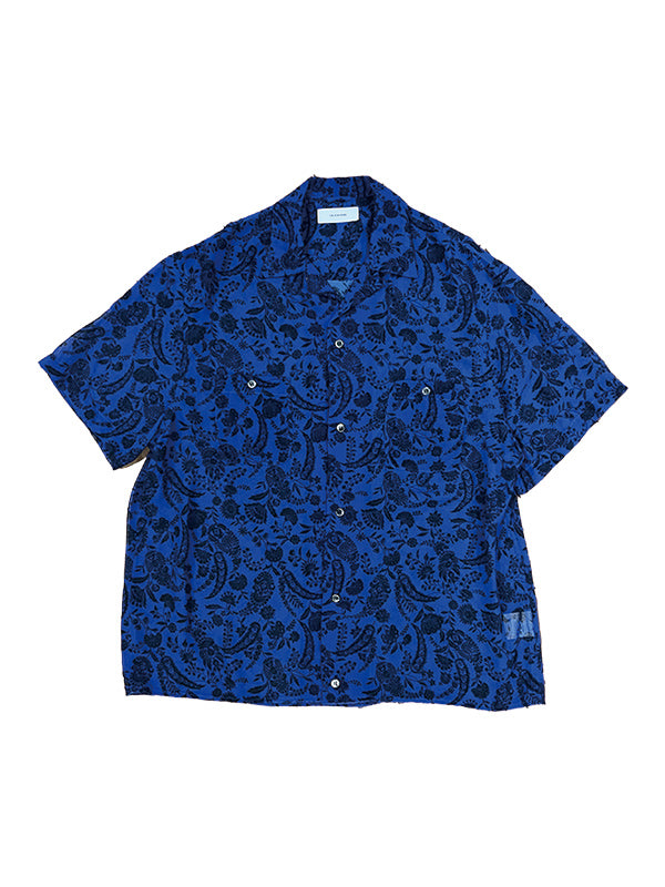 【MORE SUMMER SALE】THE JEAN PIERRE ジャン・ピエール Sheer Paisely SS Shirt - BLUE -