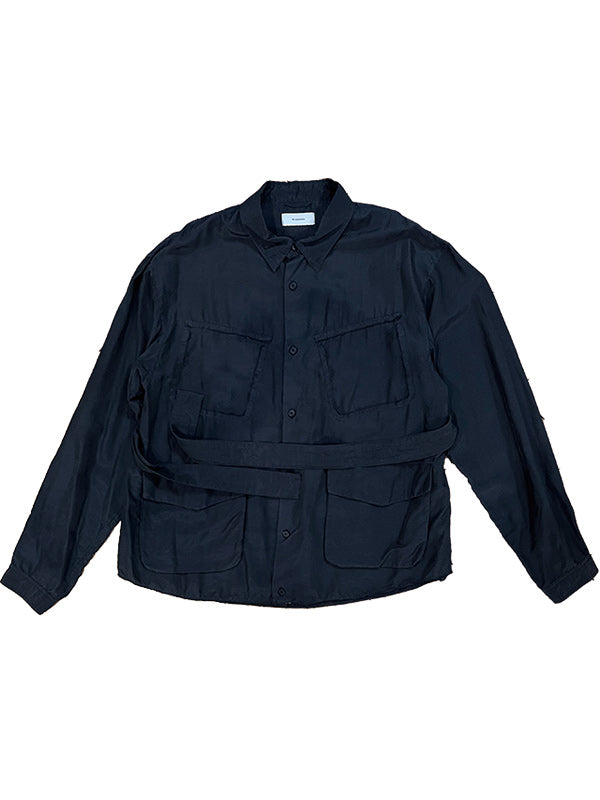【MORE SUMMER SALE】THE JEAN PIERRE ジャン・ピエール Tear Off Safari Silk Shirt - FADE BLACK -